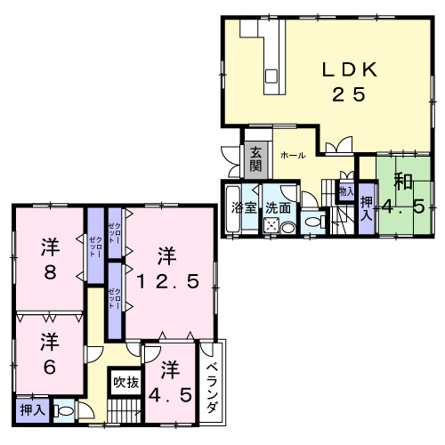 5LDK/ LDK 25.0帖 1室/和室 4.5帖 1室/洋室 8.0帖 1室/洋室 6.0帖 1室/洋室 12.5帖 1室/洋室 4.5帖 1室 |