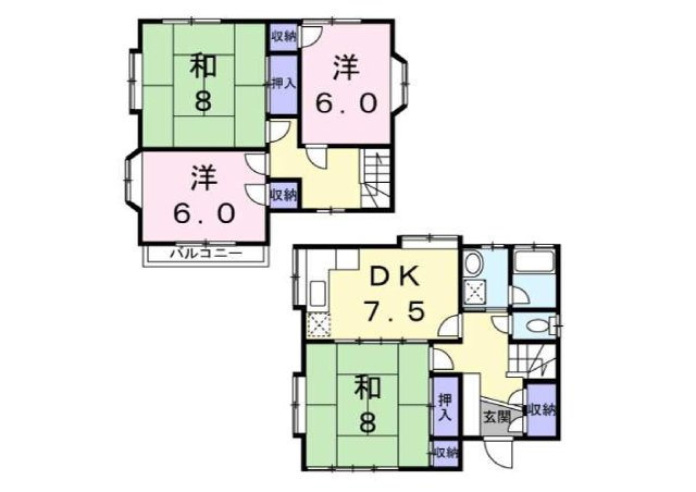4DK/ DK 7.5帖 1室/和室 8.0帖 1室/洋室 6.0帖 2室/和室 8.0帖 1室 |