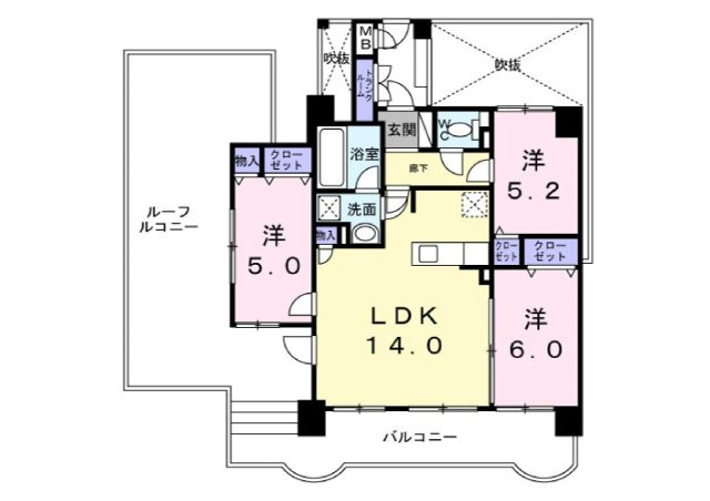 3LDK LDK 14.0帖 1室/洋室 6.0帖 1室/洋室 5.2帖 1室/洋室 5.0帖 1室 |