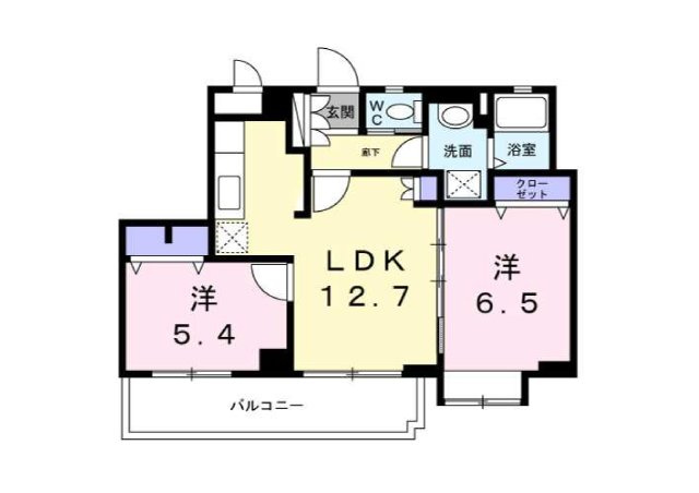 2LDK LDK 12.7帖 1室/洋室 6.5帖 1室/洋室 5.4帖 1室 |